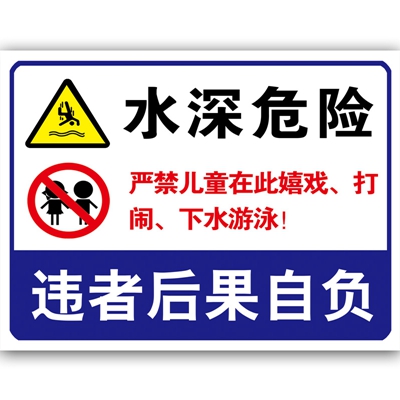 一到学生们放假的时候,就会有些淘气的孩子到河边玩水。比较容易发生危险! 这时就需要在河安装一个提示牌。上面写着:水深危险,请勿下水。等类似的字样。因为每个人的欣赏审美不同,所以小编今天提供一些,与水深危险有关的标牌图片和文字,大家在制作的时候,可以参考一下。