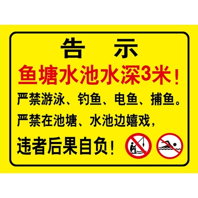 水深,禁止游泳。