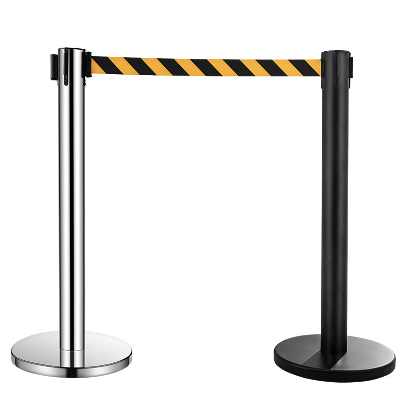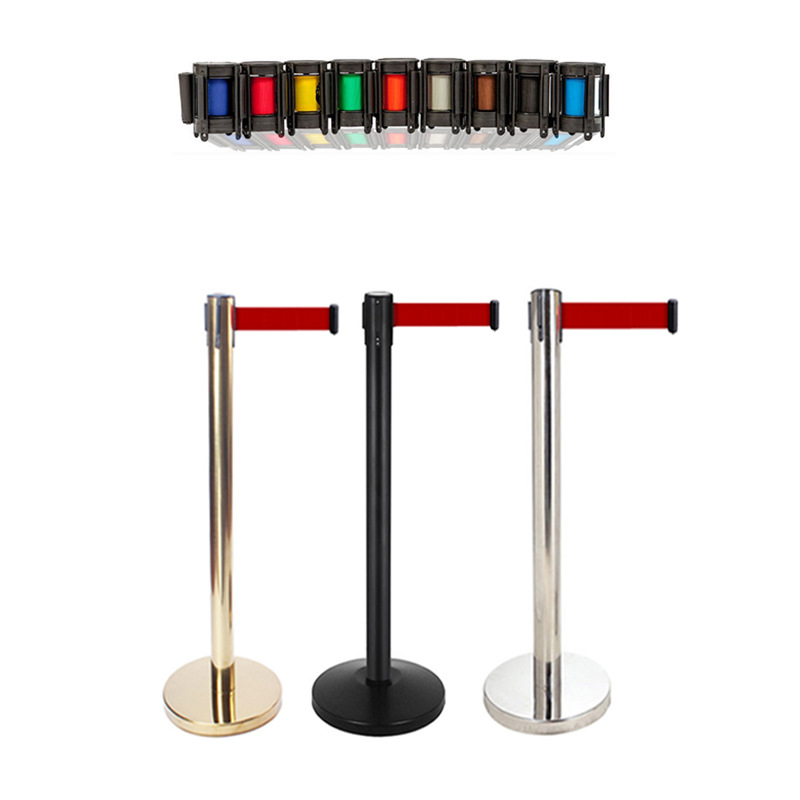 拉带立柱一般用于:电力、通信、机场、地铁、展厅、宾馆、银行等大厅,起一个排队等候作用。银行柱一般也称为:警戒线栏杆,机场酒店商场用配拉带金属铁烤漆立柱等名称。拉带立柱带子长度有2米/3米/5米,颜色多样可挑选,可以印字和logo(价格另计)